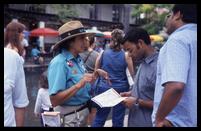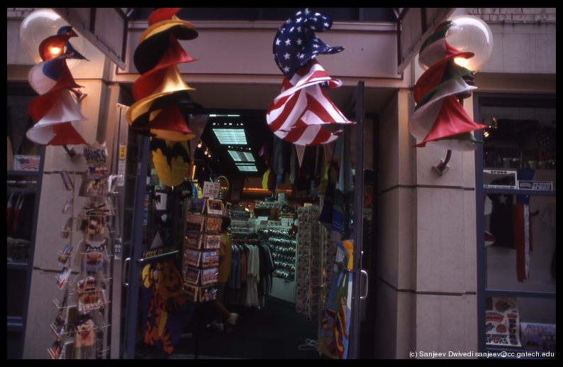 Finished with the Alamo, we roamed around a little and sure enough, there was this guy telling the story of the Alamo to wide eyed kids. He was taking so much enthsiasm in his story telling that even adults stood momentarily and listened to his story with this trance. I have heard too many stories about seiges of castles, kingdoms (one such hero being Maha Rana Pratap Singh from Indian history), so I was not really impressed. However, I found these two colorful people a nice shot.