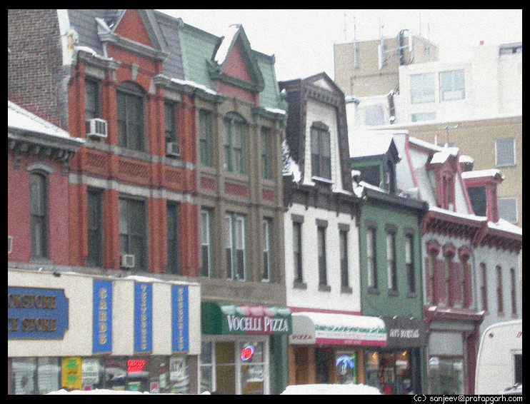 Anyways, coming back to Oakmont, it is a nifty little place sitting all by itself on the banks of a river. It is a city where the roads are paved with bricks, people walk deliberating, peopl are courteous and the whole place is covered by exactly two roads. When I went there, the place was covered in snow. Some of the houses had pretty lighting. Anandha and I walked around enjoying the beauty and serenity. In time we felt a little bit hungry and sighting the famous Oakmont bakery, we walked towards it.